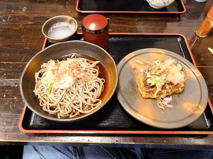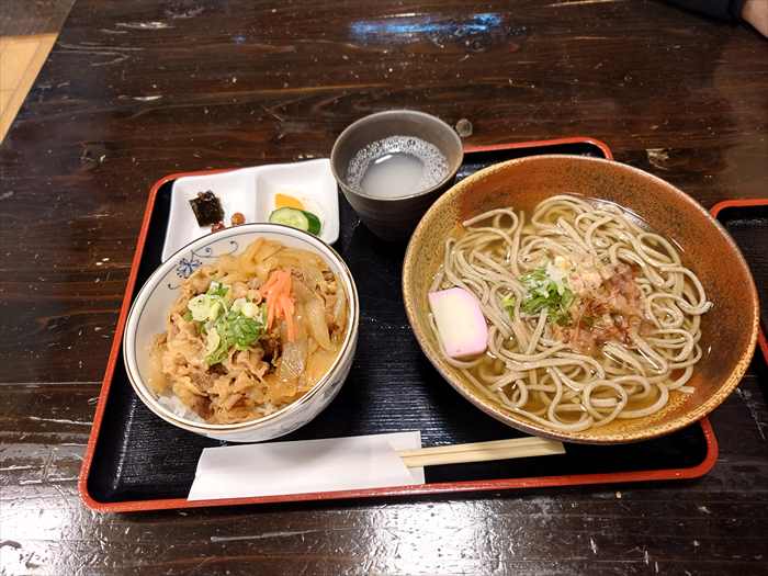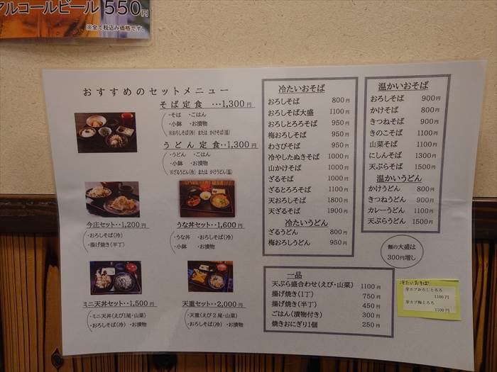 私は、「今庄セット ¥1200」、「にしんそば ¥1200」、「揚げ焼き(1丁) ¥1200」を注文し、友人は「牛丼セット」を注文しました。