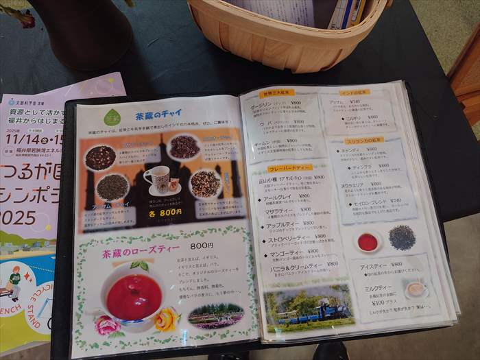 ハーブティーには「やる気UPティー」「おからだ大切ティー」など、個性あふれる名前がついていて、それぞれの目的に合ったお茶を選べるのが楽しい。