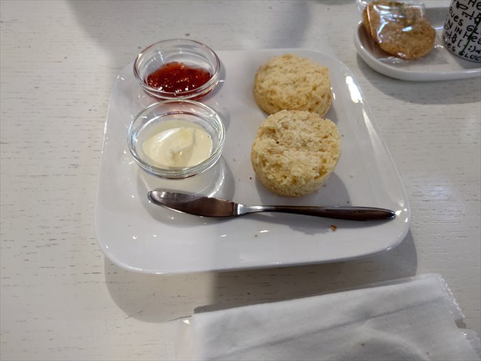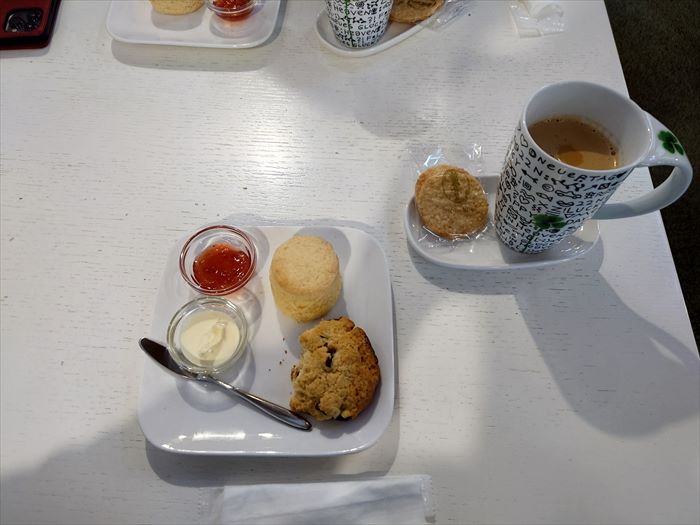 二人とも「カカオ・チャイ ¥800」と「プレーンスコーン ¥350」を注文しました。私だけ追加で「ラムレーズン・スコーン¥300」を注文しました。