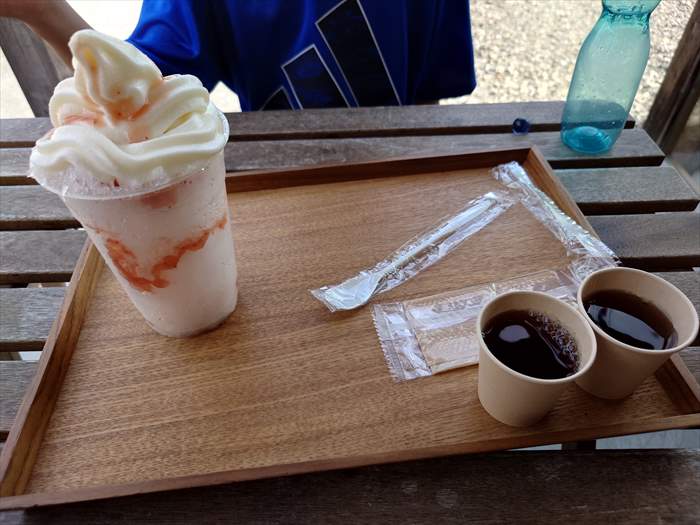 「お米のソフトのかき氷フロート(いちご味)¥800」をいただきました